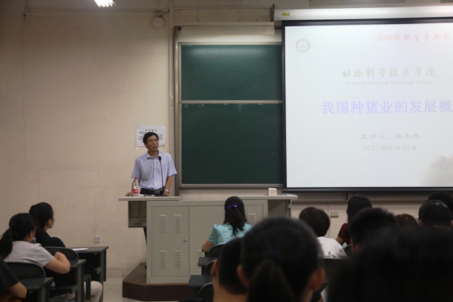 8月30日上午九点,公司邀请知名员工潘永杰为公司2014级全体新生做报告。潘永杰于1985年7月毕业于yl23455永利官网畜牧专业,曾任小店种猪场场长,现任北京顺鑫农业股份有限公司鹏程食品分公司副总经理。他扎根基层,长期工作在顺义区小店种猪场,把美好年华奉献给北京的种猪事业,曾荣获国务院农业技术突出贡献奖、北京市农业技术推广一等奖。荣获北京市“五四奖章”、北京市职工科技创业能手、北京市优秀青年知识分子、北京市劳动模范等荣誉称号。