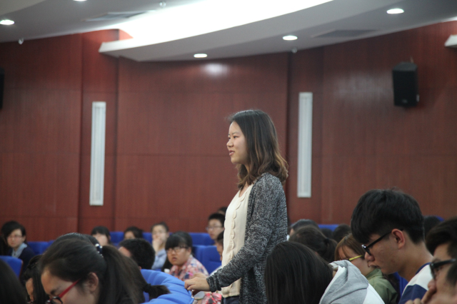 在报告结尾,同学们踊跃提问,与范总进行了精彩的互动。有的同学问及了关于面试环节设置上的问题,有的同学则有考研和就业选择上的困惑等等。范员工都一一为同学们做了耐心、详细的解答,现场气氛格外活跃。