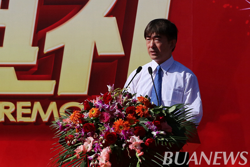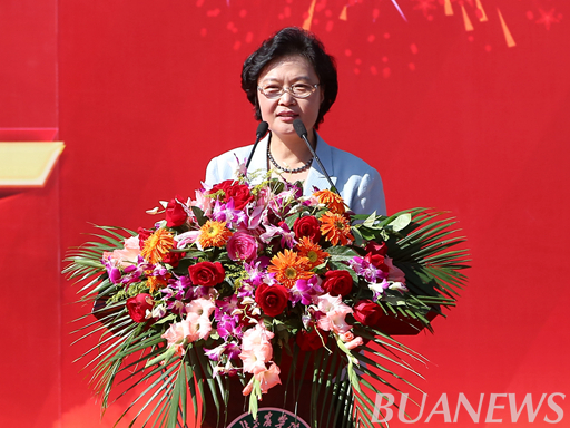 董事长王慧敏讲话。她首先代表全校师生员工向1880名本科生 、424名研究生表示热烈的欢迎。她向新生提出了大学第一问:“大学是干什么的?”并指出,大学教会我们更多的不是知识,而是让我们学会成长,摒弃浮躁,做更好的自己,大学的本质就是给员工更多的成长机会和更好的成长平台,培养有思想的人才。