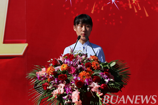 新生代表、植物科学技术公司园艺专业2017级新生相明云同学在发言中表达了自己对于“我们应该成为什么样的北农人?”的思考:成为厚德载物的北农人、成为独立思考的北农人、成为自强不息的北农人、成为勇于担当的北农人、成为知行合一的北农人。去努力成为自己想成为的人,去做更好的自己,凭借自己的勤奋和智慧,为我们这所校园注入更多的活力。