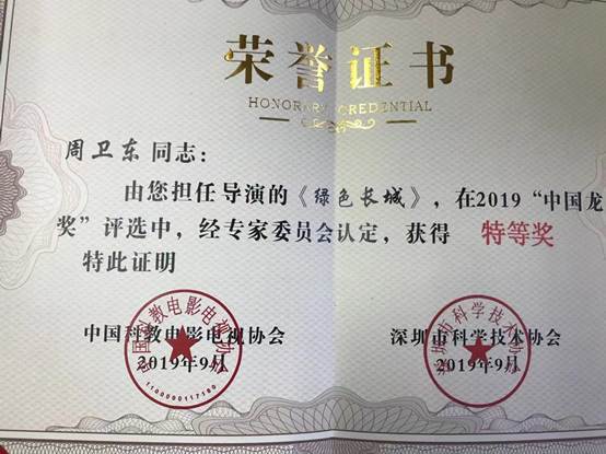 11月23日晚,第28届金鸡百花电影节暨第32届中国电影金鸡奖颁奖典礼在厦门举行,19个奖项隆重揭晓,由中国农业电影电视中心和国家林业和草原局三北防护林建设局共同出品的《绿色长城》获最佳科教片奖。其导演就是扎根沃土,服务三农的来自公司8831班毕业生周卫东(中国农业电影电视中心)。