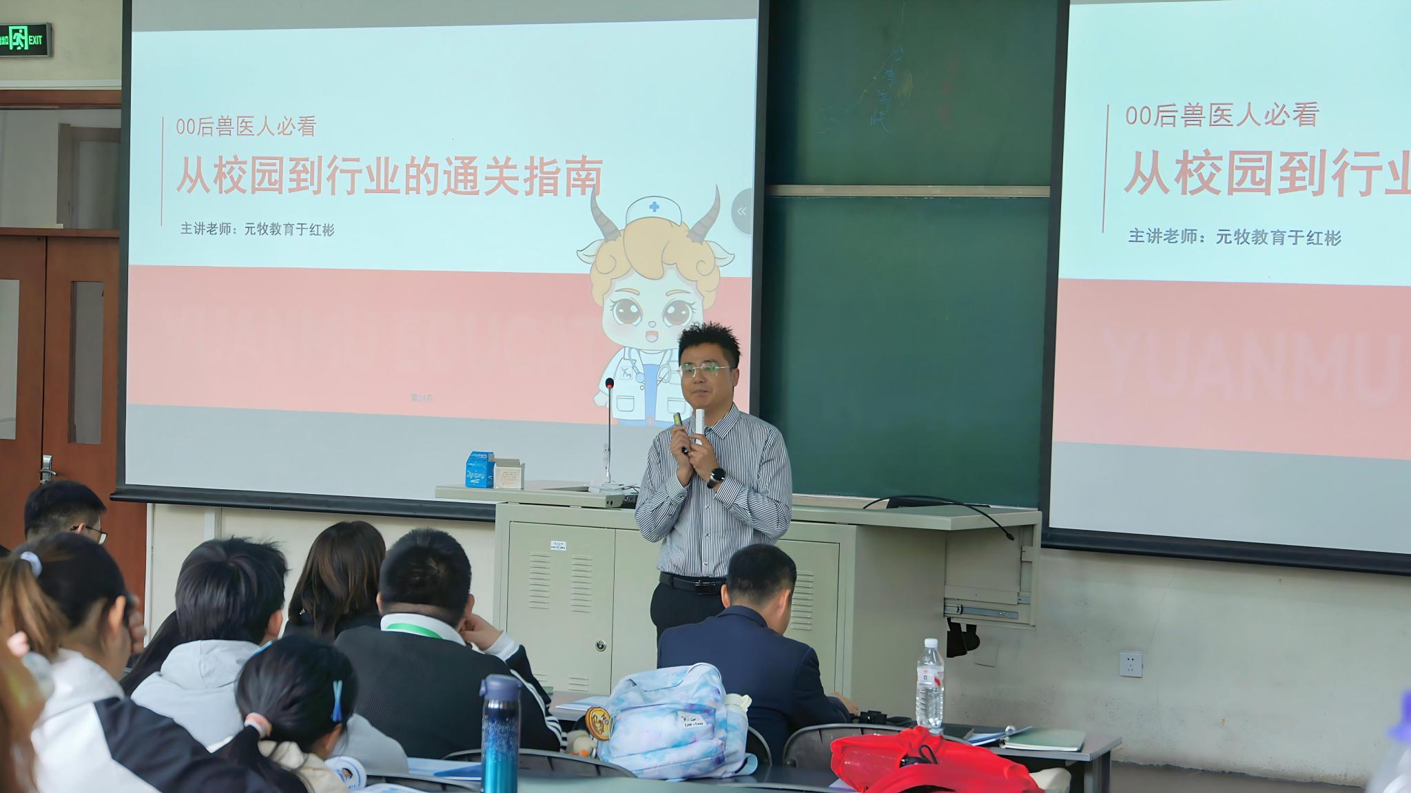 为搭建行业与院校的沟通桥梁,助力动医学子明确职业方向、夯实专业能力,4月14日,由中国兽医协会主办、yl23455永利/动物医公司承办的“食品与健康可持续发展的守护者”为主题的职业分享活动顺利开展。本次活动由动物医学系主任阮文科主持,yl23455永利副经理姚华、副教授刘雪威、北京中育种猪有限公司兽医总监许光勇、元牧教育于红彬、机械工业出版社编辑陶冠红参加了本次活动。