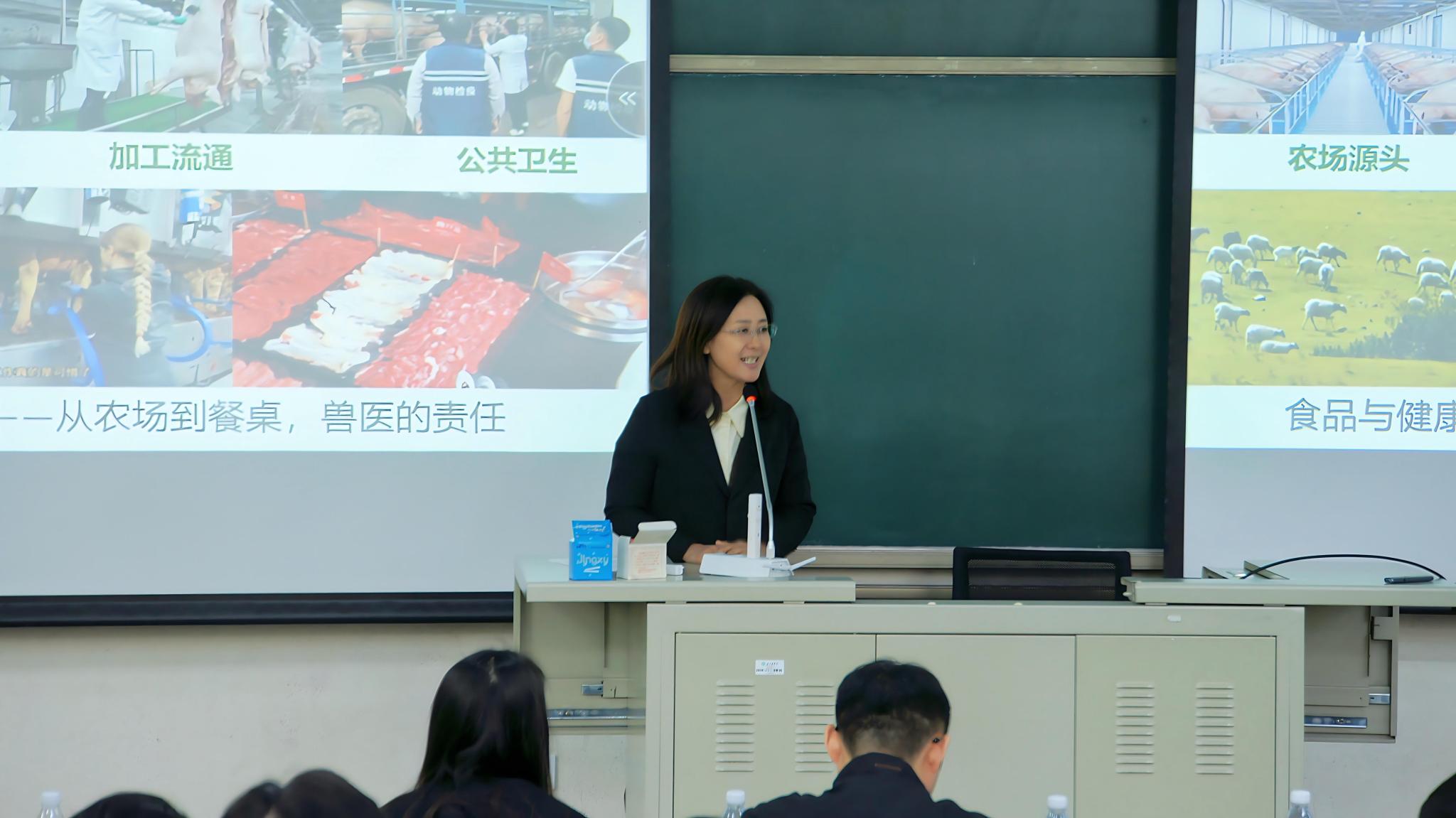 姚华强调了兽医行业在保障食品安全、守护公共卫生、推动畜牧业可持续发展中的核心作用,系统解读了兽医在“从农场到餐桌”全链条中的关键职责,深入阐释了畜禽防疫、食品安全管控、人畜共患病防控等核心工作的重要意义,明确了兽医作为食品与健康可持续发展守护者的行业定位,鼓励动医学子深耕专业、勇担使命,成长为新时代优秀兽医人才,为学子们明晰了专业学习与行业发展的方向。